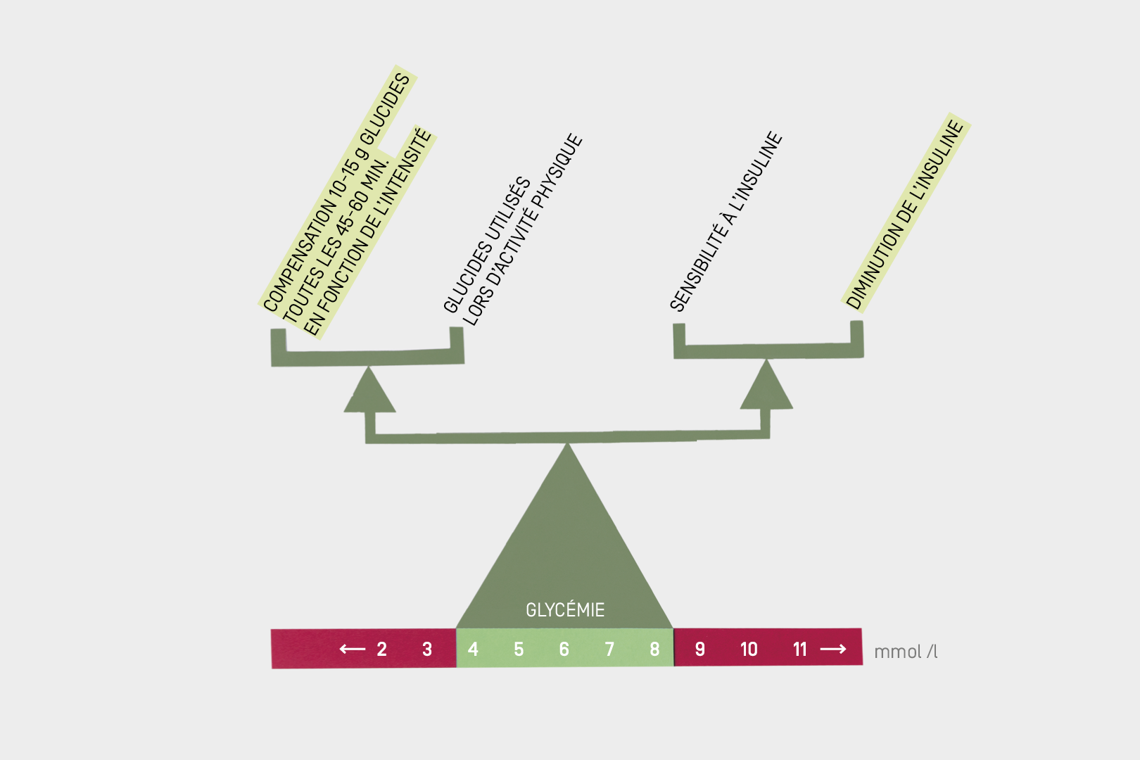 Pour éviter cette situation, une adaptation de la dose d’insuline avant et après l’activité physique pourrait être nécessaire. Si le taux de glucose est inférieur à 7 mmol/l, une compensation de 10-15g de glucides par 45-60 min selon besoins individuels est recommandée. Le système en boucle fermée contribue à la sécurité en ajustant l’insuline de manière automatisée. Pour ce système, c’est à l’enfant de programmer sa pompe en mode sport. Il reste recommandé de prendre une compensation avant l’activité physique si son taux de glucose est inférieur à 5.5 mmol/l. Dans les deux cas, une fois la collation prise, laissez l’enfant faire son sport.
