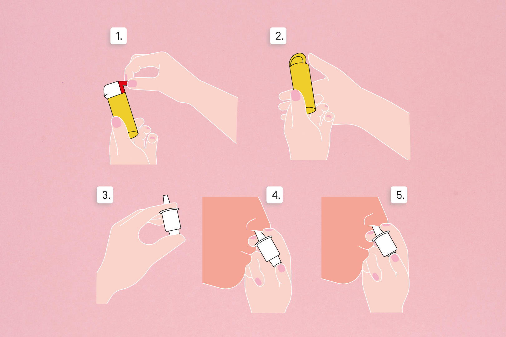 - Tenez le dispositif entre les doigts et le pouce. N’appuyez pas sur le piston avant d’avoir inséré la tige dans une narine. Autrement, la dose unique que contient le dispositif sera perdue.